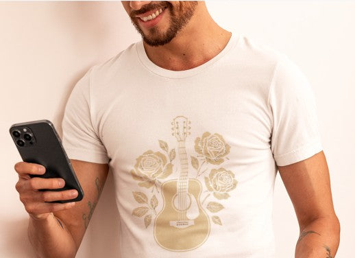 Let your style sing with this striking acoustic guitar and roses tee. A blend of rustic charm and romantic spirit, it’s perfect for musicians, country lovers, and anyone whose heart beats to the rhythm of strings and blooms. This tee is perfect for all kinds of occasions.